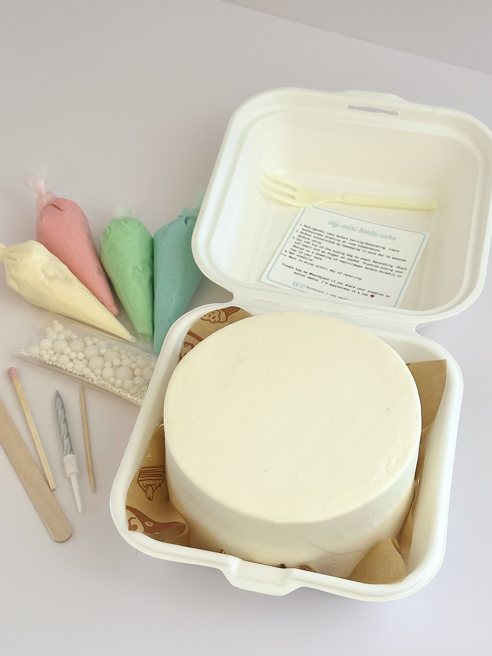 Create your own minimalist bento cake! Mini 4" vanilla chiffon sponge cake with vanilla milk cream or homemade strawberry jam vanilla milk cream filling, pre-made buttercream and variety size pearls for decorations. Buy 2 or more and get 20% off (automatically applied at checkout). What's included:
