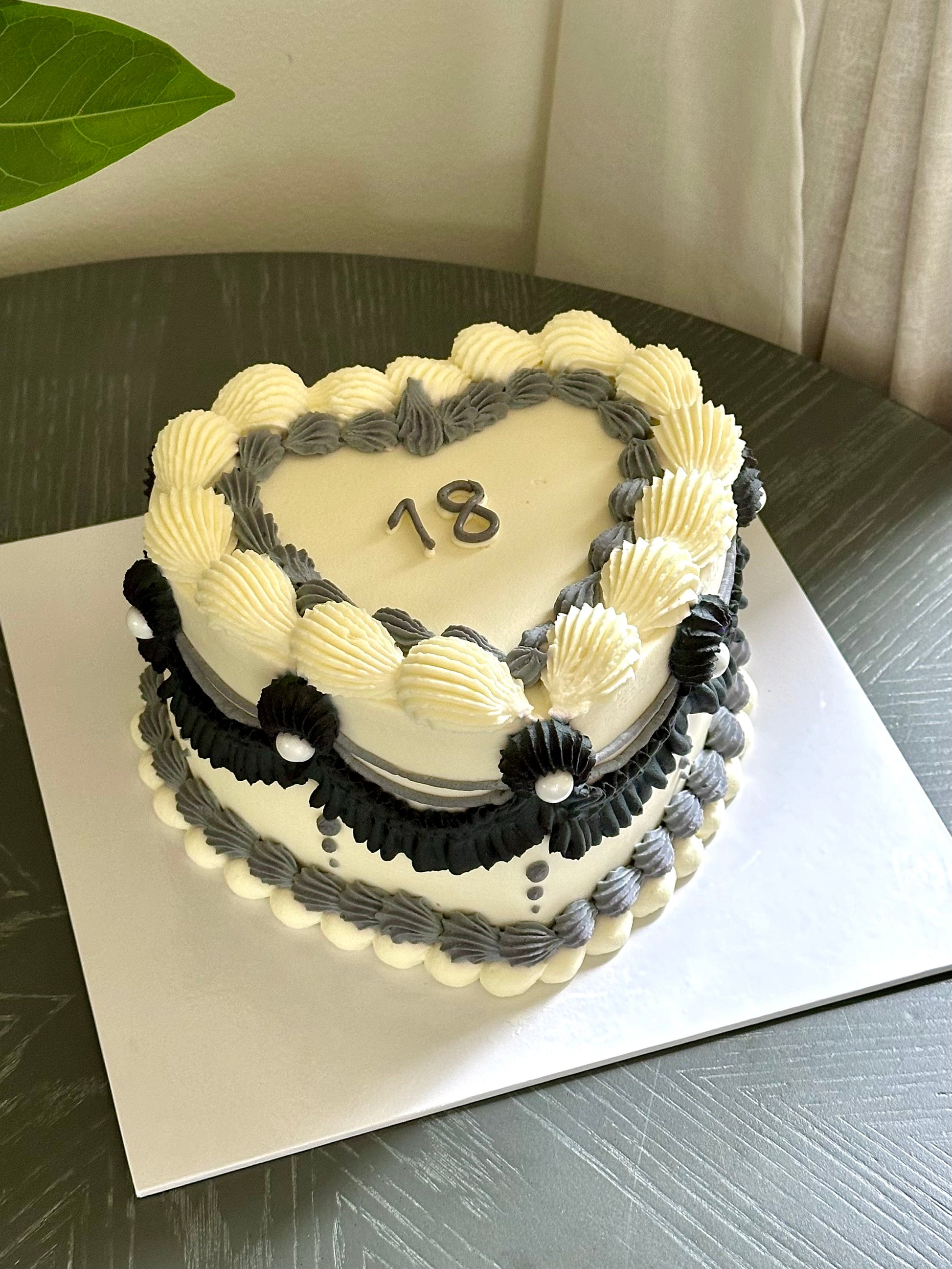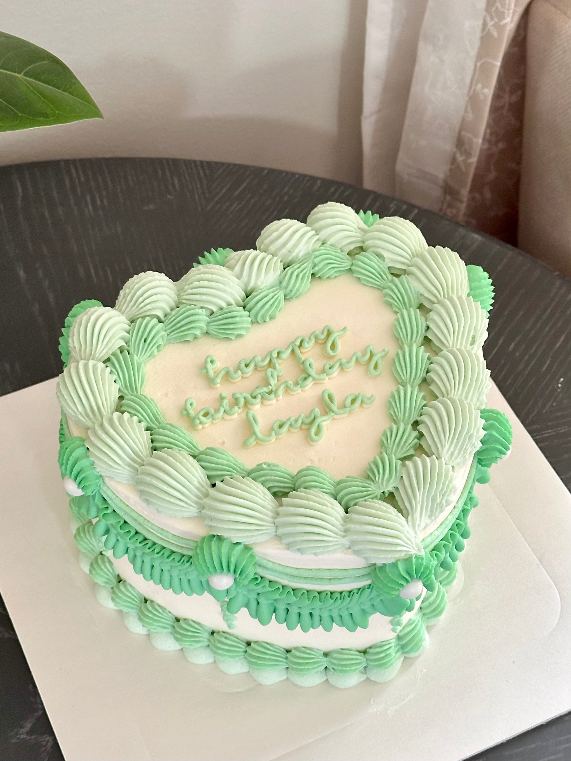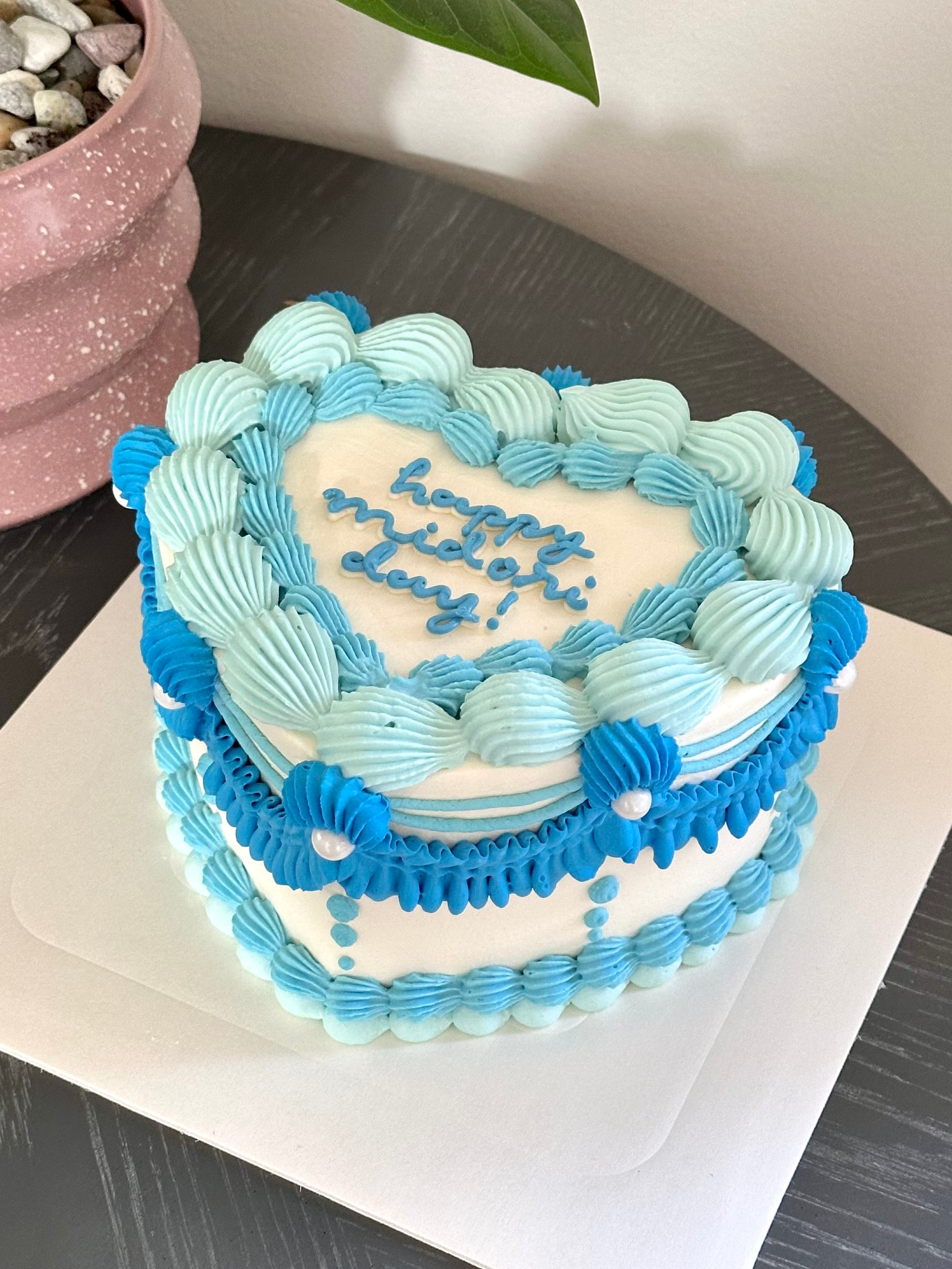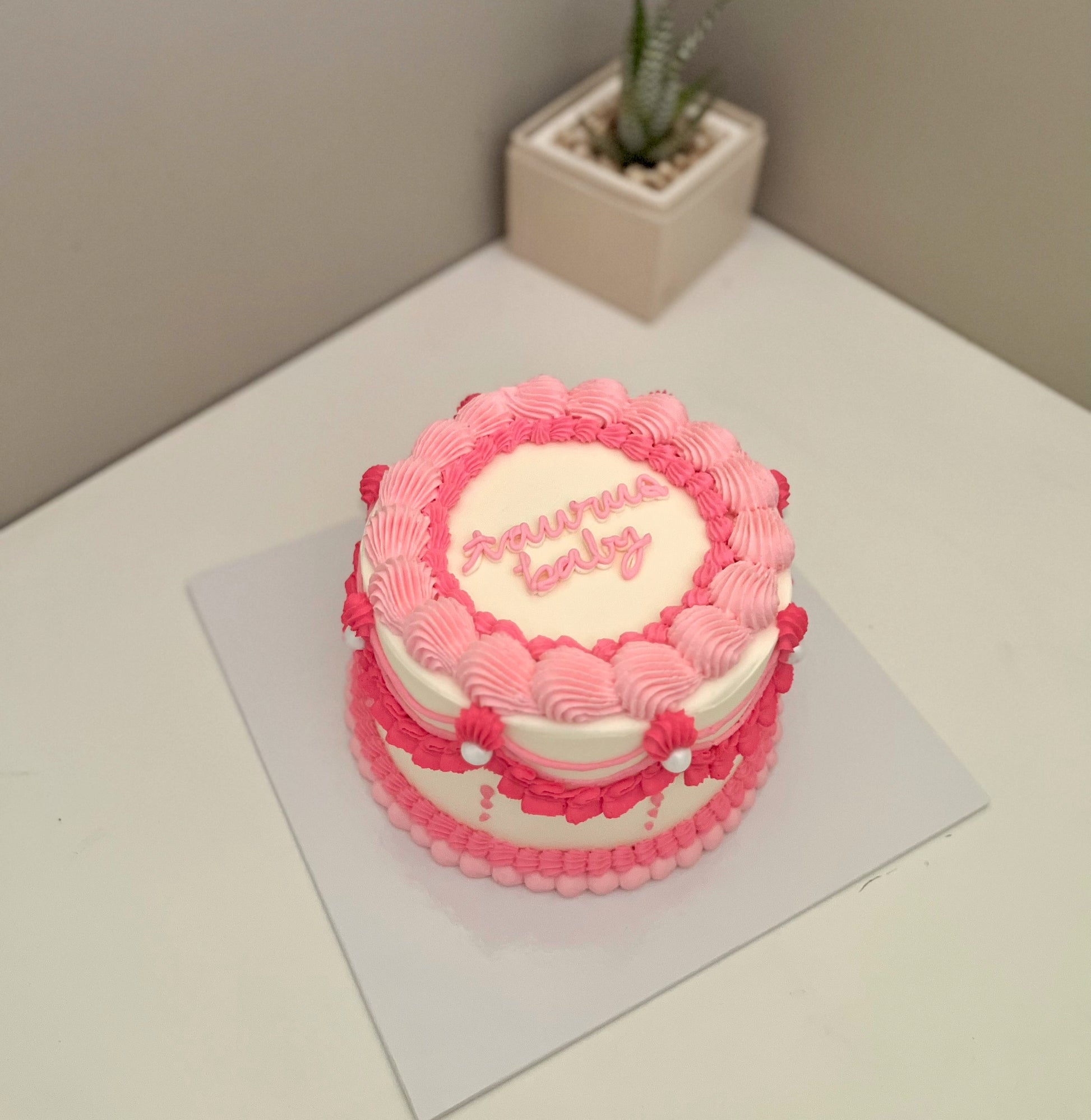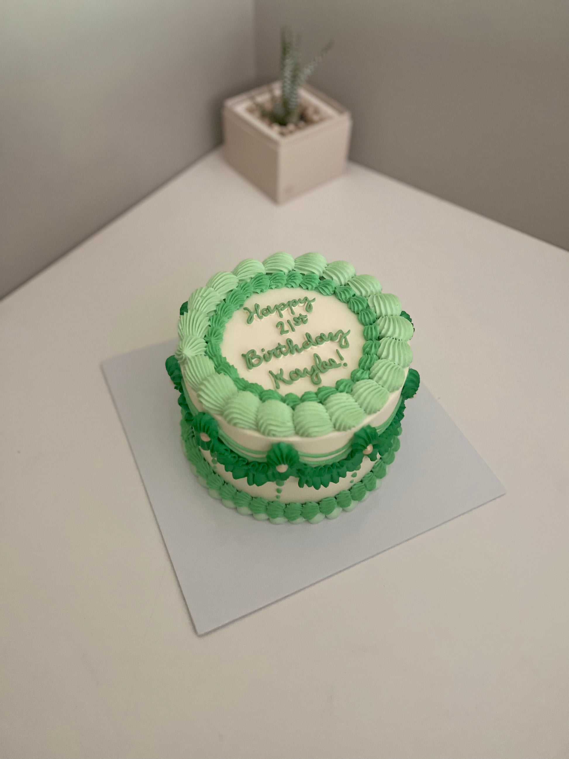 Vintage design with different shades of one color on a white cake base. Design varies based on size.